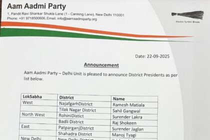 AAP New President : दिल्ली के नए जिला अध्यक्ष – जानें किसे मिली कौन सी जिम्मेदारी